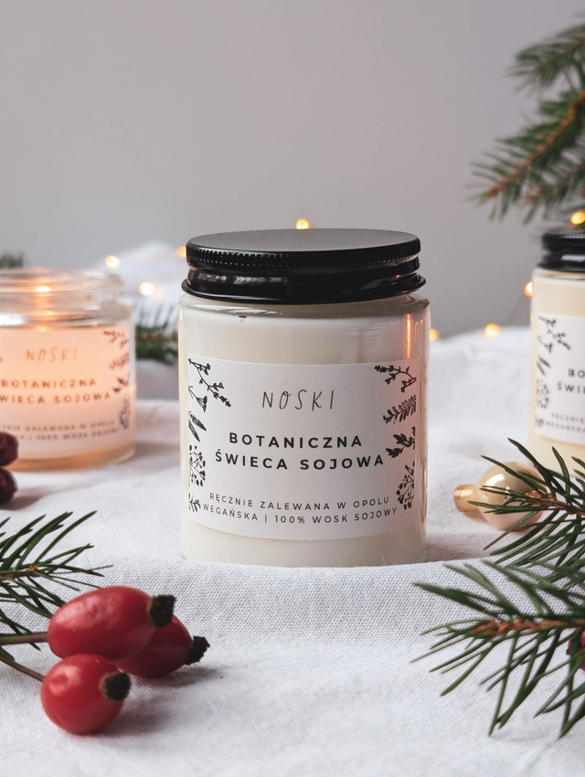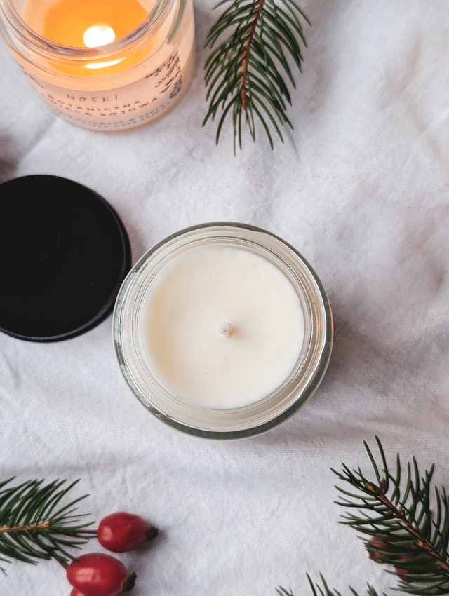W 100% naturalny wosk sojowy, bez parafiny. Opakowanie bez plastiku – nadające się do recyklingu.