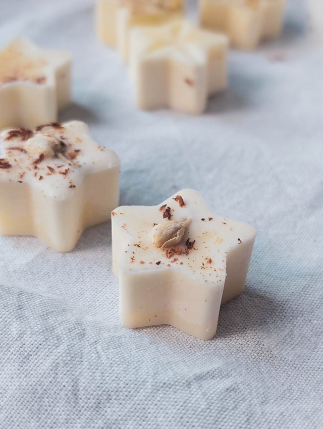 6 gwiazdek z wosku sojowego w ekologicznym opakowaniu.